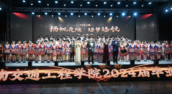 本网讯(记者 赵红深 摄影 赵红深 喻威)芳华今夏绽,岁月曲上圆。6月12日晚7点30分,由学校主办、人文与艺术学院承办的2024届毕业晚会“扬帆交院•逐梦远航”在学校体育馆倾情上演。校长陈治亚受邀出席并致辞;党委书记刘文君、执行校长刘杰、名誉校长刘平娥、常务副校长彭文武,副校长余孟辉、刘义伦,董事董晔卉等领导及各机关处室、各二级学院师生代表2000余人观看了本场演出。