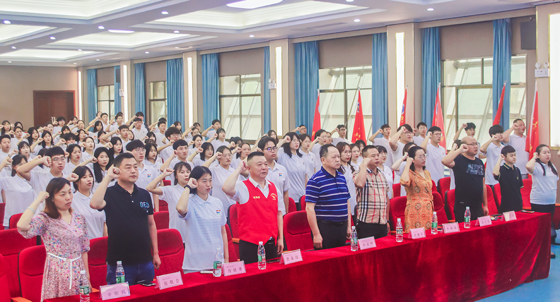 本网讯(记者 赵红深 通讯员 曾歌)6月19日,我校在航母楼101举行2022年大学生暑期“三下乡”社会实践活动出征仪式,为即将走进基层学知识、走近群众长见识、走向一线作贡献的志愿者们壮行。副校长余孟辉出席并授旗,学校相关职能部门负责人,各二级学院团总支书记、指导教师代表、社会实践队员150余人参加出征仪式。衡阳市政协委员、衡阳市备战青年志愿者协会会长、湖南省志愿者协会副会长、衡阳市网络志愿者协会副会长唐备战应邀到会指导。出征仪式由校团委书记漆在林主持。
