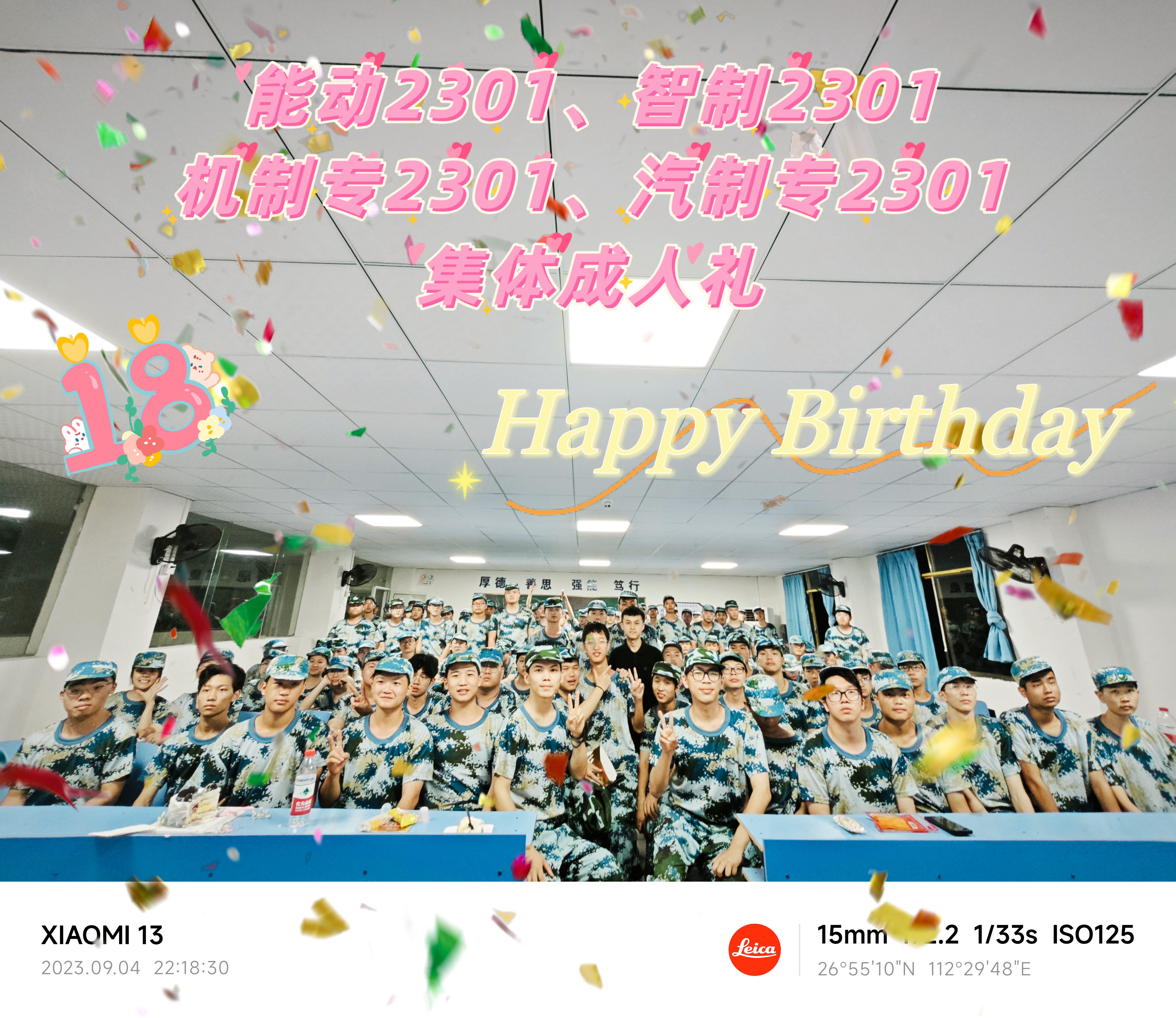 在新生报到前夕,机电工程学院辅导员何立权老师在梳理新生信息时发现,9月4日正好是2023级机械设计与制造专业新生阳燎的十八岁生日,于是就组织教官和学长学姐为他策划了一个温馨且难忘的“成人礼”,也借此机会为三营一连全体123名同学准备一场集体“成人礼”。为此,何老师和学长学姐们提前制作了庆生ppt、定制蛋糕、购买小零食、并邀请嘉宾。在何老师及学长学姐们眼中,这个活动是何等重要,它不仅代表着众人对新同学的关爱和期望,更重要的是想通过这富有仪式感的活动开启新生们向往的大学生活。