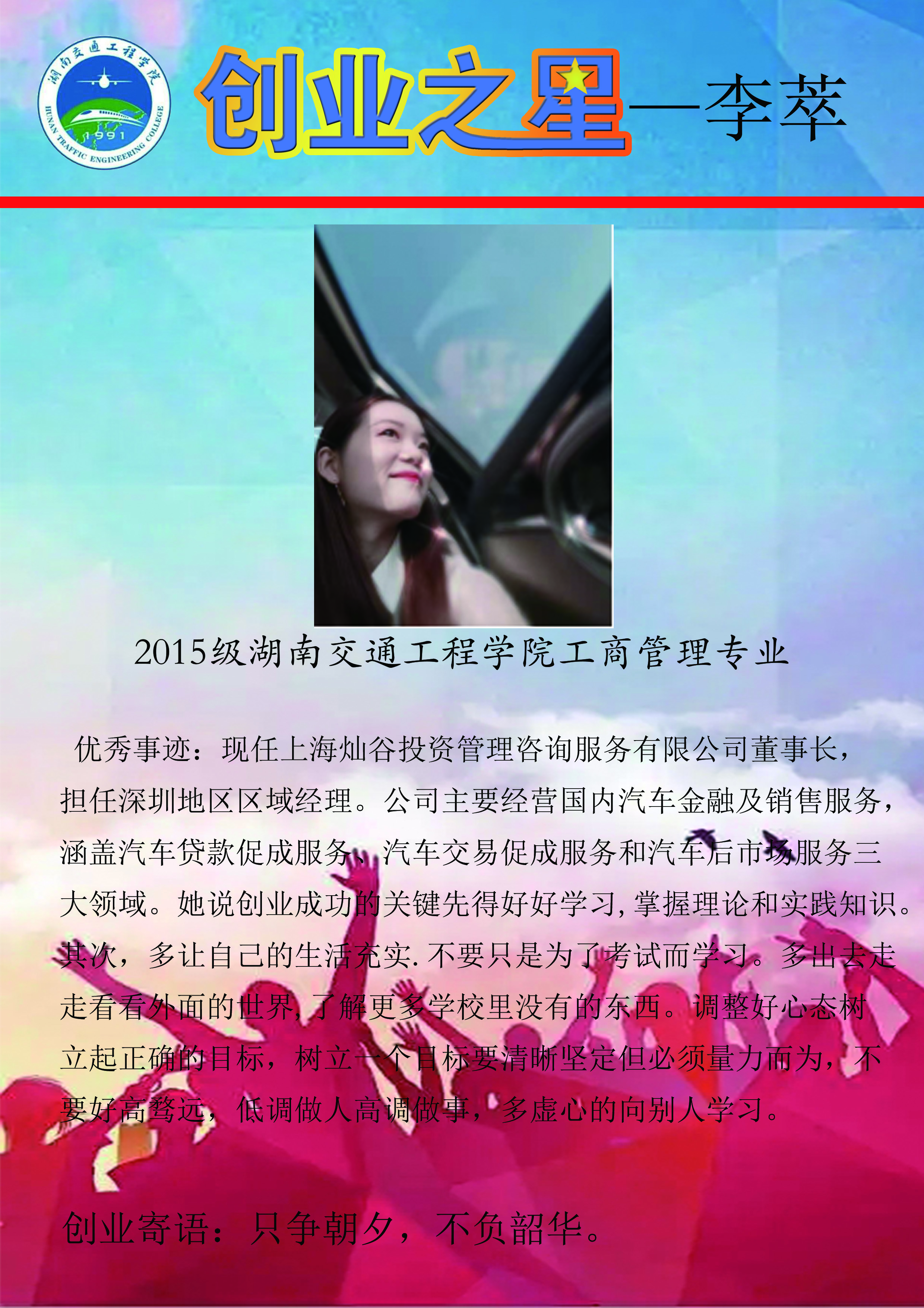 湖南交通工程学院大学生创业之星——李萃