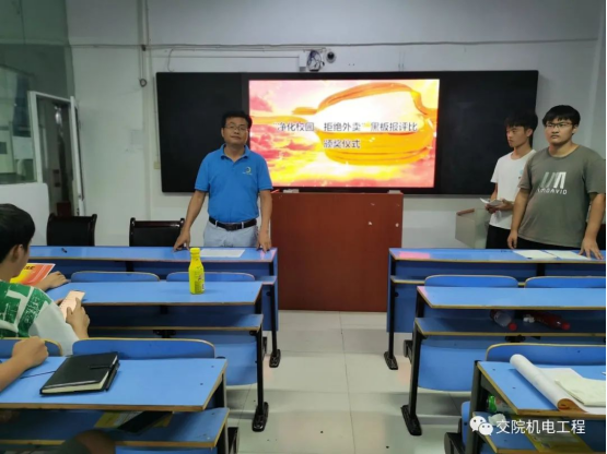 为进一步丰富为了进一步丰富校园文化生活,促进德智体美劳全面发展,提高同学们对校园环境的守护意识。机电工程学院于9月29日晚19:30成功举行以“净化校园,拒绝外卖,垃圾入篓,从我做起”为主题的黑板报评比颁奖仪式。