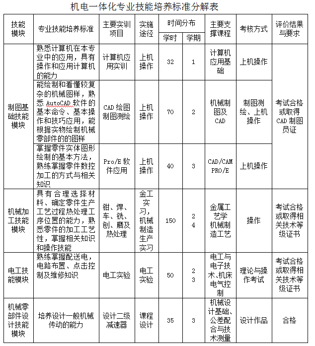本专业培养拥护党的基本路线, 掌握机电专业必备的基础理论和专门知识,具有从事专业实际工作的综合职业能力和全面素质,适应生产、建设、管理、服务第一线需要的,具备机电一体化技术基础理论基本技能,掌握机械制造的加工工艺,能从事普通机床操作、数控机床操作与编程、机电产品设计与工艺设计、车间现场管理、机电产品销售与九游官网入口的售后服务以及机电设备的维修、安装、操作等工作,德、智、体、美等方面全面发展的高素质、高技能人才。
