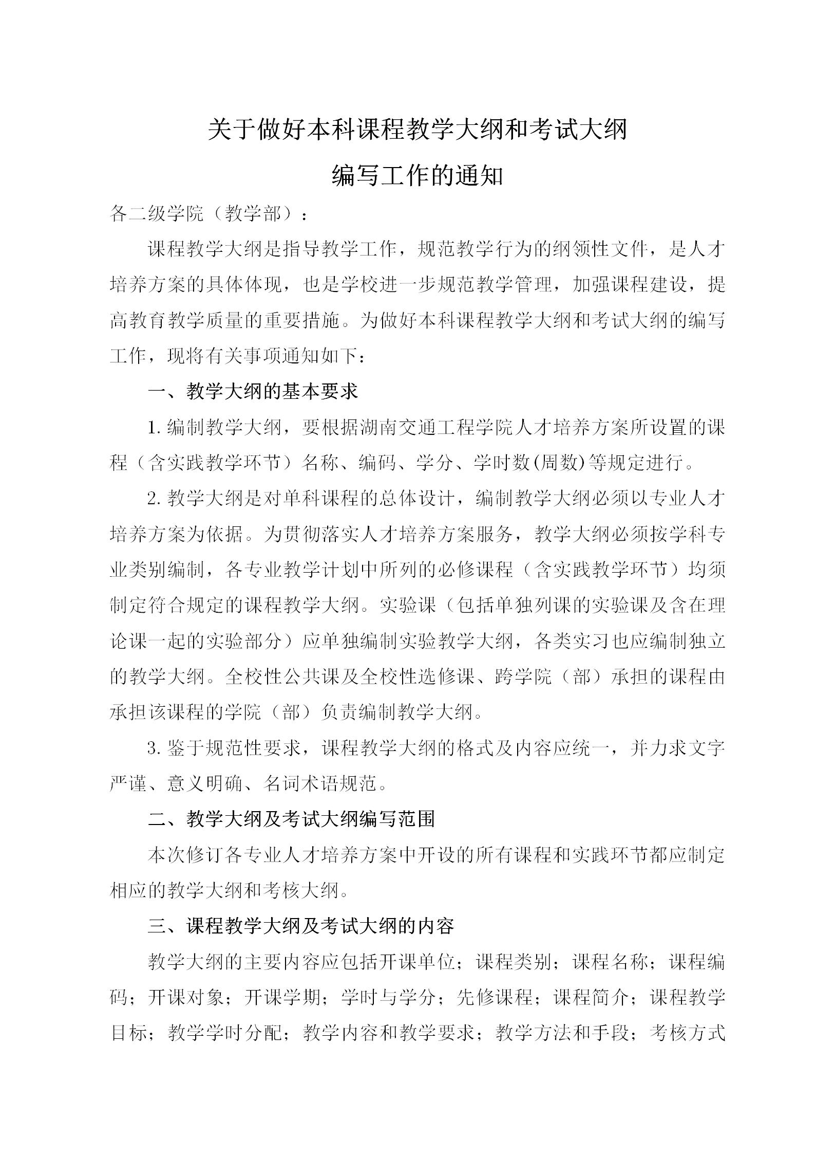 关于做好本科课程教学大纲和考试大纲编写工作的通知